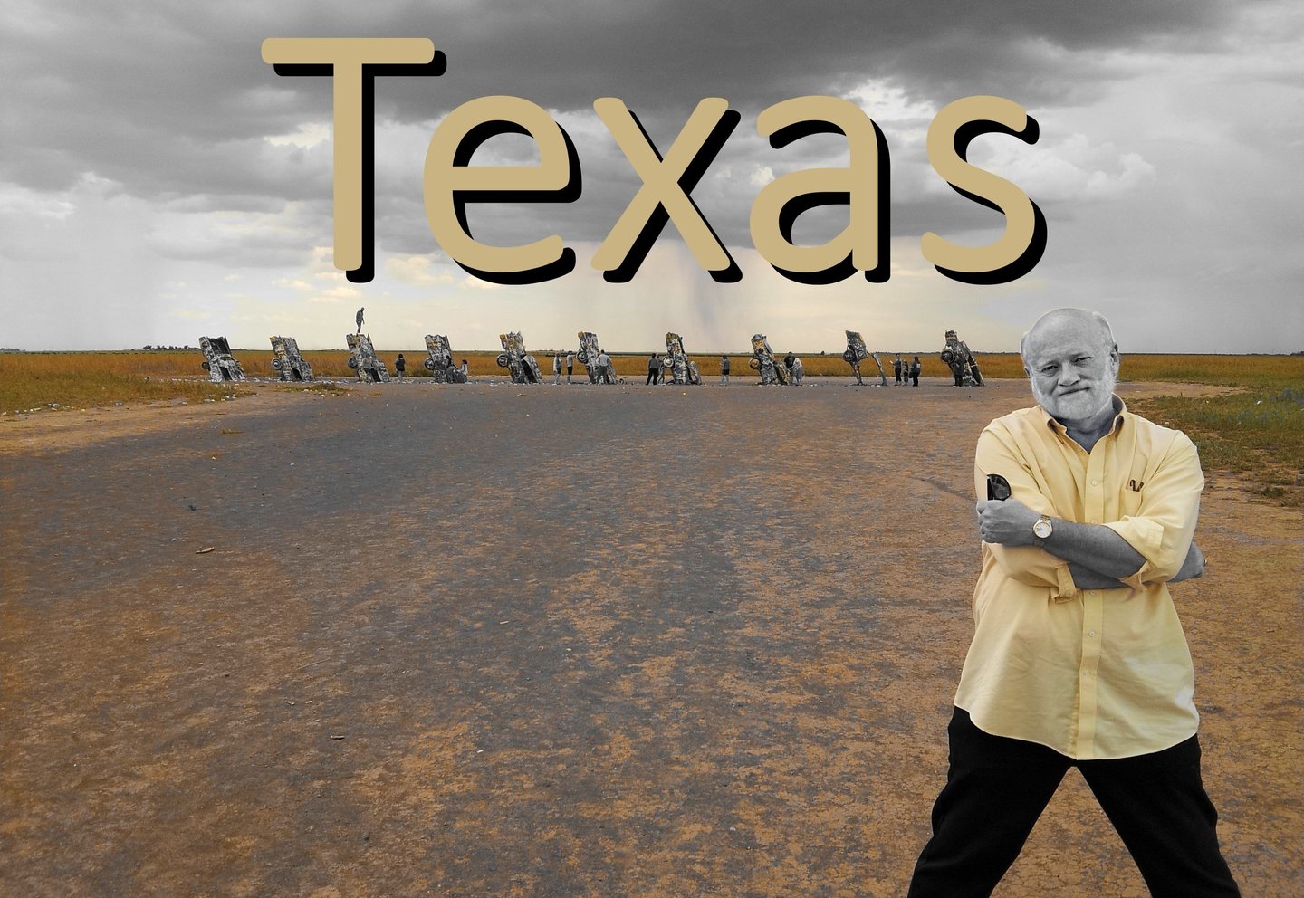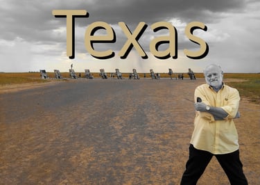 From the Johnson Space Center's where Apolo-Saturn V rockets rest in horizontal repose, to the Alamo's bullet pierced stucco walls, intriguing sights abound. However, I confess that perhaps the most enduring recollection I hold is the sight of ten rusted Cadillacs in a row, partly buried in a "hood-down" and "trunk-up" fashion.