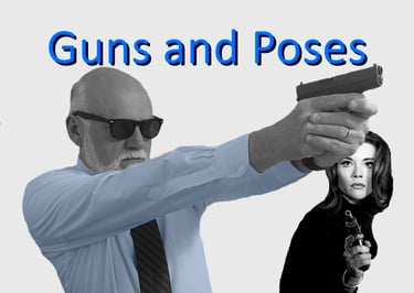 Celluloid heroes perfected the art of trigger-pulling poses. William S. Hart, Tom Mix, John Wayne, Gary Cooper and Clint Eastwood handled their Peacemakers with varied styles. Each of their stances were distinctive. Consciously, juxtaposing line, shape and form for their own visual signature. Outside of Westerns, there are recognized stances that are employed in “real life” for practical application.